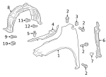 Partition Panel Clip, Wheelhouse Liner Clip, Lock Cover Clip, Upper Trim Clip, Wheel Opening Molding Clip, Protect Plate Clip, Lower Air Guide Clip, Under Cover Clip, Upper Seal Retainer, Antenna Assembly Clip, Trunk Side Trim Retainer Clip, Fender Liner Fastener, Protector Clip, Side Air Baffle Clip, Air Guide Clip, Lower Absorber Clip, Trim Cover Upper Clip, Splash Shield Clip, Lower Cover Clip, Air Duct Clip, Intake Duct Clip, Upper Cover Clip, Fender Liner Retainer, Fender Liner Retainer Clip, Radiator Support Splash Shield Clip, Trunk Trim Panel Clip, Protector Bolt, Clip